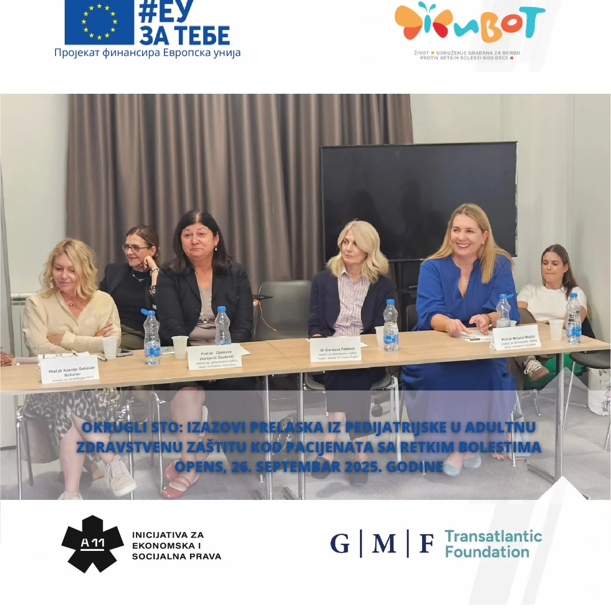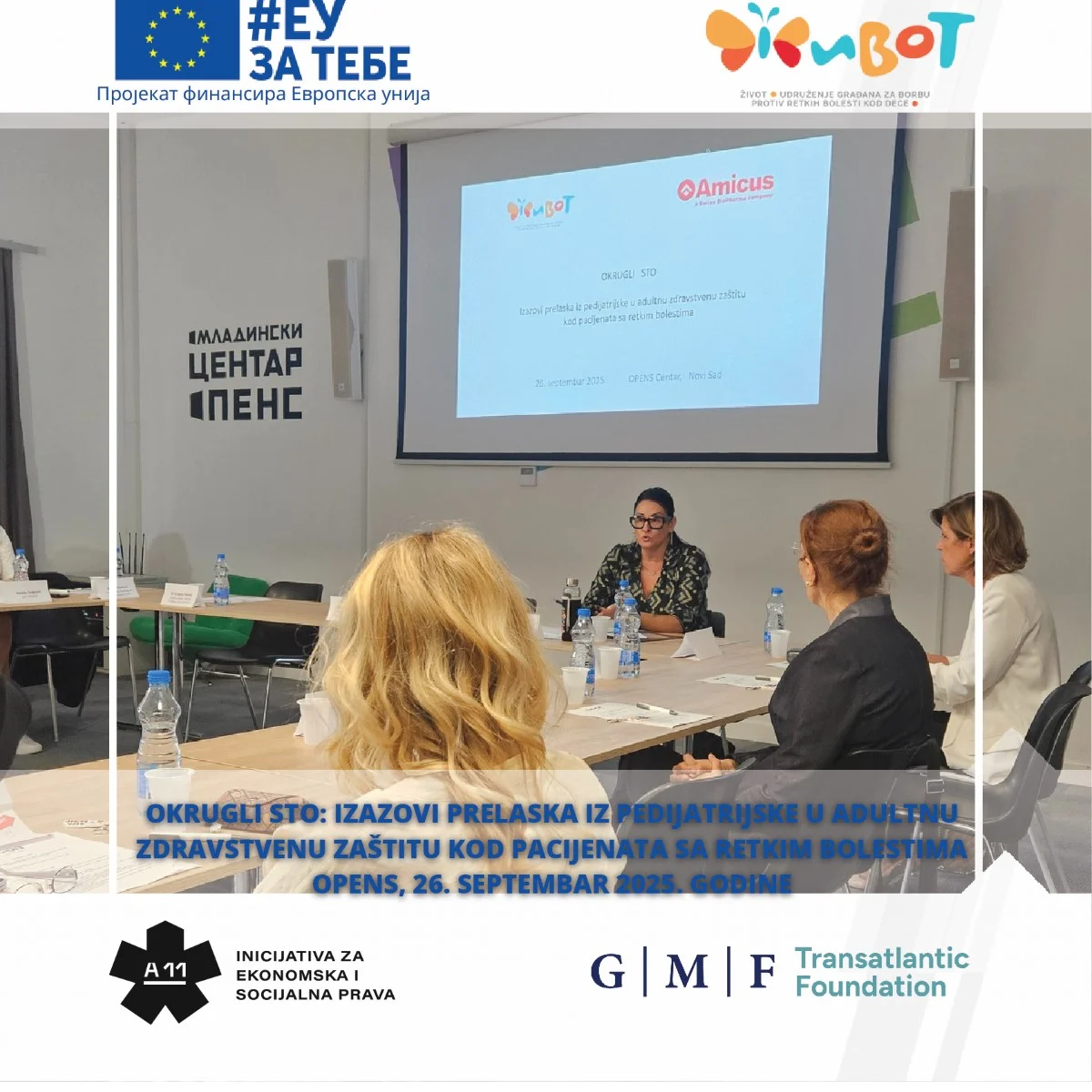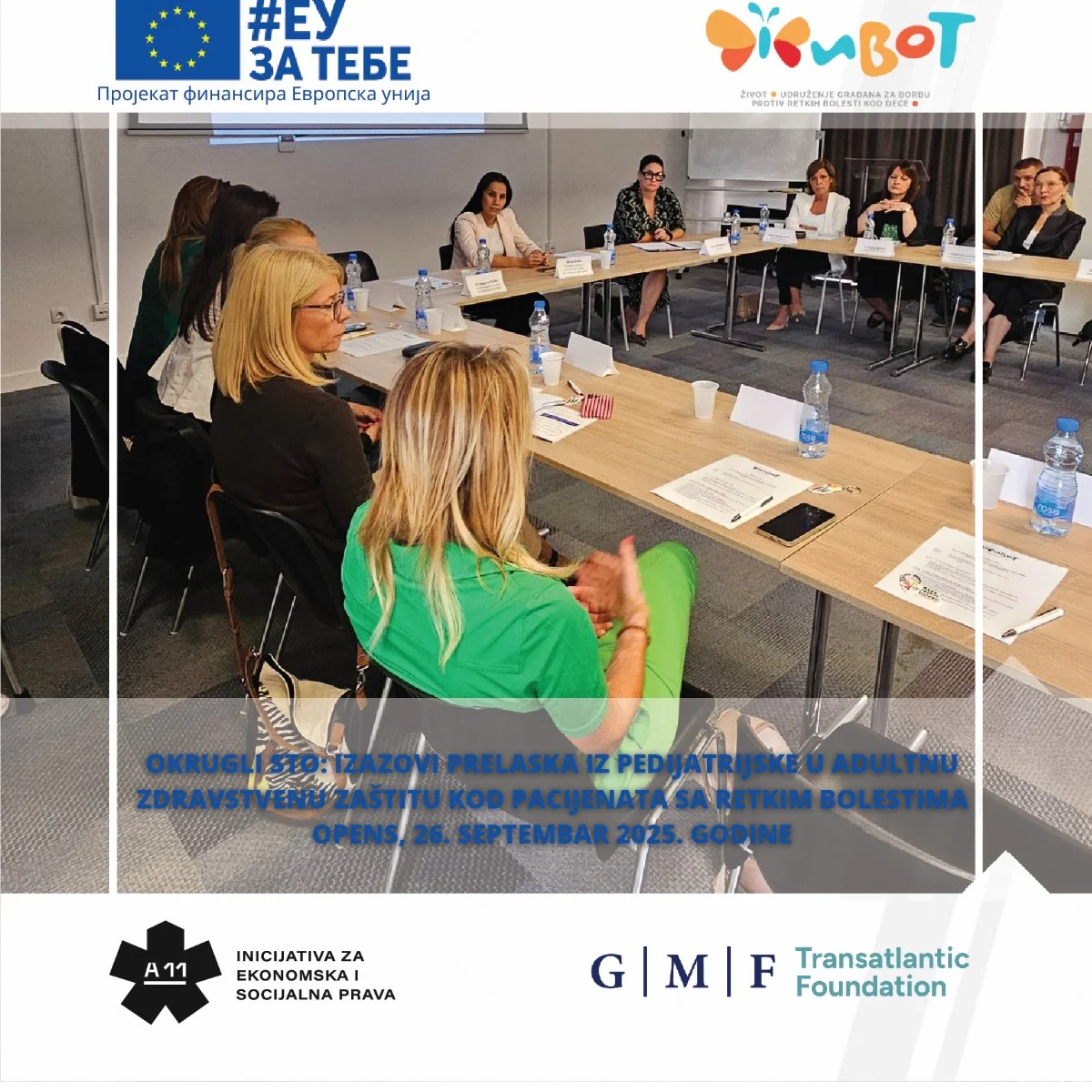 Udruženje za borbu protiv retkih bolesti kod dece „Život“ je 26. Septembra 2025. u prostorijama OPENS Centra u Novom Sadu održalo okrugli sto posvećen temi „Problemi u ostvarivanju zdravstvene zaštite pacijenata obolelih od retkih bolesti pri prelasku iz pedijatrijskog u adultno doba“. Ovaj Okrugli sto je održan u okviru projekta koji realizuje udruženje „Život“ uz finansijsku podršku Evropske unije u Srbiji. Nosilac projekta je „Život“ udruženje građana za borbu protiv retkih bolesti kod dece, uz podršku– Inicijative za ekonomska i socijalna prava A11, Transatlantske fondacije (German Marshall Fund) i Evropske unije u Srbiji u okviru inicijative EU za tebe.